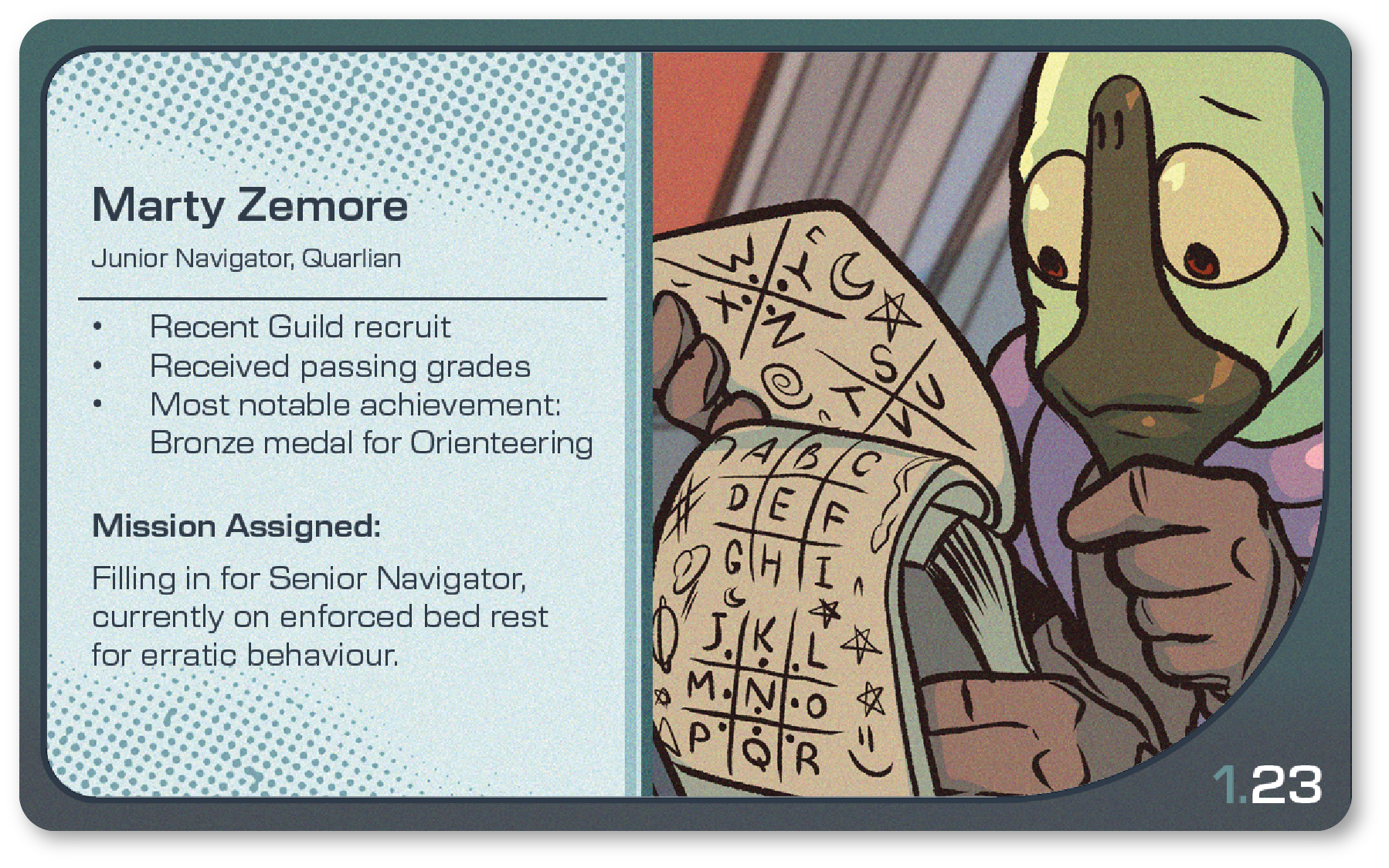 Did you know that you, too, could become a character in the game? Adrián will draw you, a loved one, a furry friend or whatever alien you would like to brief (subject to approval, obviously) and make you part of the game. See the “become an extra” tier on the Kickstarter for more details.